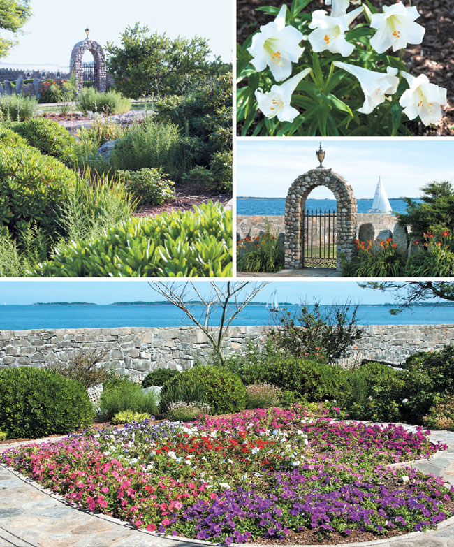 It’s a straight shot from the causeway down the center of Enders Island. At every edge of this potato-shaped plot, Tom had “dinosaur walls” (high seawalls with distinctive stegosaurus-like profiles) built to stand guard against the storms. The vegetable garden, a grape arbor and fruit trees are remnants of those early days; he also kept a cow and a horse. Tom’s scientific laboratory is now repurposed as a wine cellar.