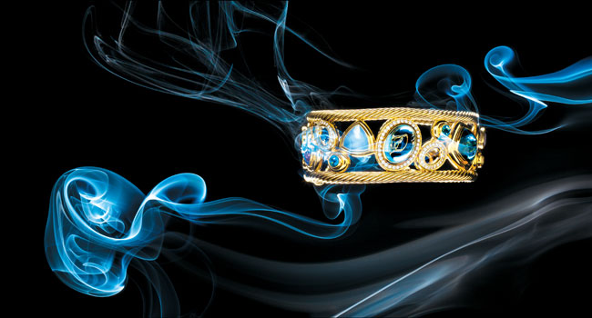 David Yurman Mosaic cuff with blue and London blue topaz, lavender amethyst, Iolite and diamonds mounted in 18K yellow gold ($12,000). Lux Bond & Green, 169 Greenwich Ave., Greenwich, 203-629-0900, 136 Main St., Westport, 203-227-1300, lbgreen.com, davidyurman.com.