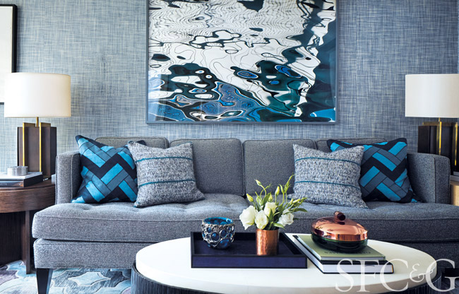 The living room and bedroom are testaments to the designer’s love of fabrics. The window treatments and bedding are the handiwork of Doreen Leong. “I am obsessed with the tiny details that tie it all together,” Hohla notes, referring to Leong’s dressmaker details. “I always advise not to skimp on the fabric selections. They add warmth and really set the tone and personality for your home.”