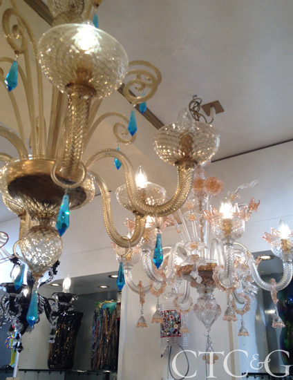 One afternoon, we chartered a boat to take us to the island of Murano to observe the glass artisans at Signoretti. It was amazing to watch them form each decorative glass petal that comprises an intricate Rezzonico chandelier. One of the premier glass factories, Signoretti created the light fixtures for the recently restored Teatro La Fenice in Venice. That afternoon, as I was heading back to the Gritti Palace for a rest, I ducked into my favorite lampshade shop in San Marco. Using Fortuny fabrics and classic shapes, Angela Rosa Greco creates custom lampshades for top designers and the finest Venetian interiors.