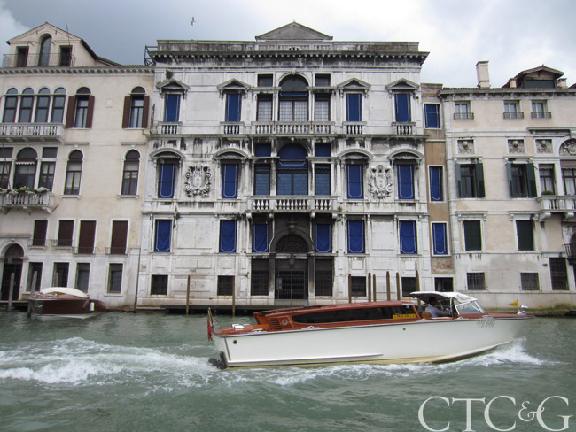John Ruskin’s book The Stones of Venice was given to me as a high school graduation present from my art teacher. I thought it was a curious gift at the time and never dreamed that Venice would become an obsession for me—it’s where I was engaged and later married. I love the careful consideration of design in everything you see—light fixtures, glassware, ironwork and, of course, the architecture. I recently returned to Venice with 40 friends to celebrate my husband’s fiftieth birthday and our tenth wedding anniversary. In true la dolce vita fashion, we toured the city and surrounding islands, showing our guests Venice from an art and design perspective, and finding great design resources along the way.