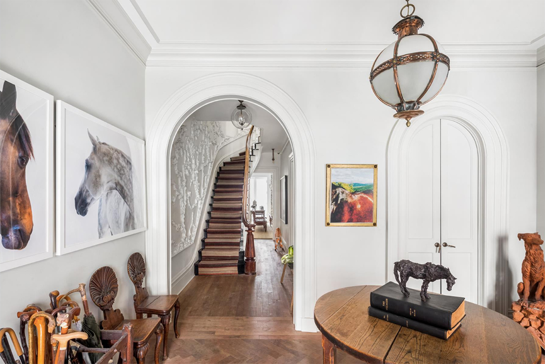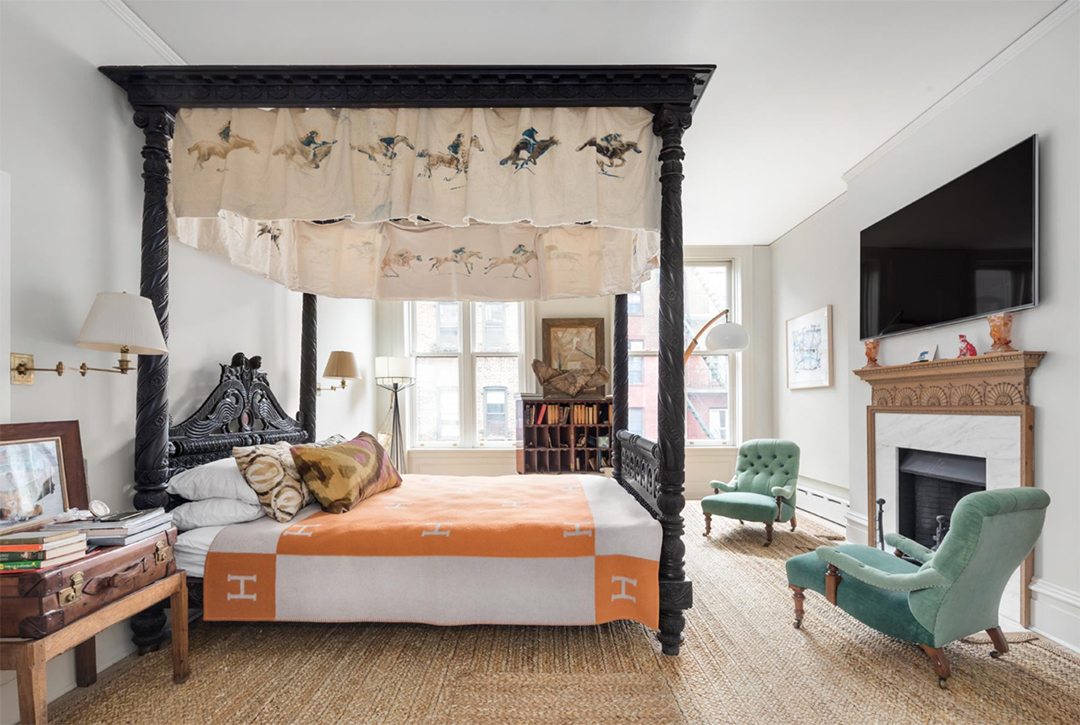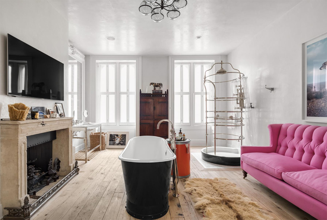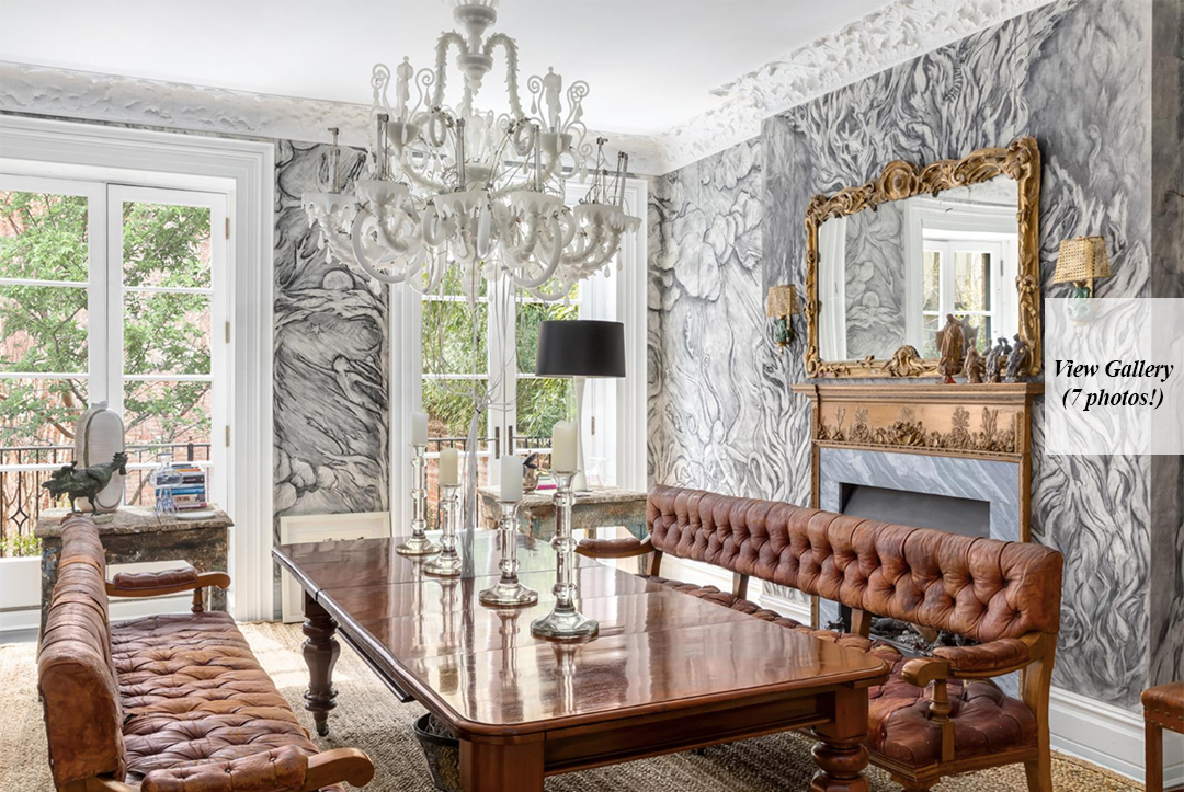 Like the waist of skinny jeans one might find at Urban Outfitters, the price of this opulent townhouse keeps inching a bit lower. The former CEO, Glen Senk, and his husband Keith Johnson, a former buyer-at-large for Anthropologie, have listed their Anglo-Italianate townhouse in Greenwich Village once more. Over the course of the past two years, it’s been on the market for various prices, initially starting at $17 million and most recently dropping to $14.95 million last December. It’s now asking its lowest sum yet, a mere $12.8 million, though that’s still a considerable increase in value from their purchase price of $8 million.Upon entry, one is greeted with a masterful 18th-century English fireplace that immediately steals the show. Full casement windows allow exorbitant amounts of light to infiltrate all 5,000-square-feet of this aesthetically satiating home. Immerse yourself in the plum-colored fully lacquered library before getting a dose of nature by moving through gorgeous French doors that open directly onto a landscaped garden terrace.Much like the eclectic collection one would find at the hipster clothing store, Senk and Johnson have collected an array of historic elements from different regions and eras that they incorporated into their two year renovation of this five floor residence. Both men bring formidable design credentials to the table, and the result is a truly lavish, eclectic blend of art and ages. The stones that comprise the heated kitchen floor were imported from the streets of Bologna, Italy, while the marble used for the countertops was sourced from Philadelphia’s Independence Hall. A rustic chic aura melds with the power of a truly professional culinary setup. There is even a Florence-inspired wood-burning fireplace equipped with an industrial crank resembling a steering wheel, which moves a grill over the flames.The master suite consumes the entire fourth floor. Travel from the bedroom to the master bath through a walk in closet. Formerly a bedroom, the bathroom highlights hardwood floors, a gas fireplace adjacent to a freestanding tub and an 20th century shower by the windows. Another unique feature is the art deco wet bar with gilded walls that has a London-inspired lineage.All in all, you simply can’t go wrong with this expertly-renovated wonder. Originally, the townhouse was listed with Corcoran, but Curbed reports that it is now with Patricia Isen, Leslie Mason, and Betsy Green of Douglas Elliman.