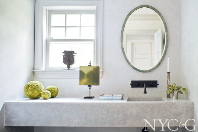 The concrete vanity top in the powder room is from Get Real Surfaces.