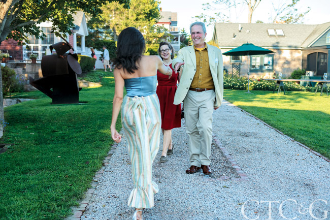 Georgette greets guests Penny Bellemy and Mark Simon.