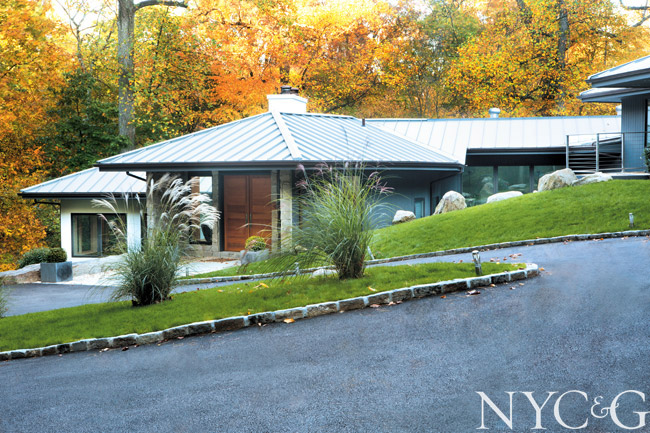 The 1980s-era house, situated on a rocky Greenwich hillside, was updated by the couple when they moved in four years ago.