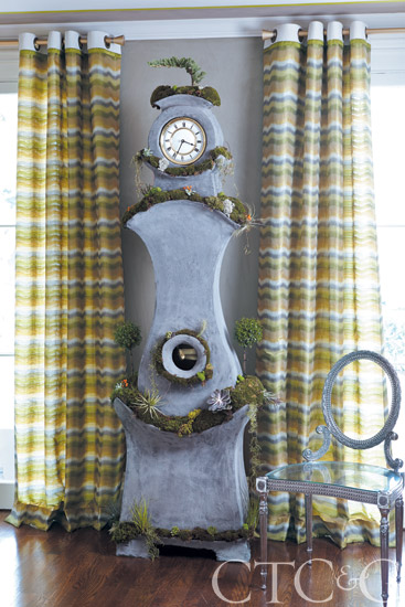 Featured in the Charles Pavarini Design Associates, Inc. living room, Robert Cannon created a living piece of art with the Living Grandmother Nature Clock.