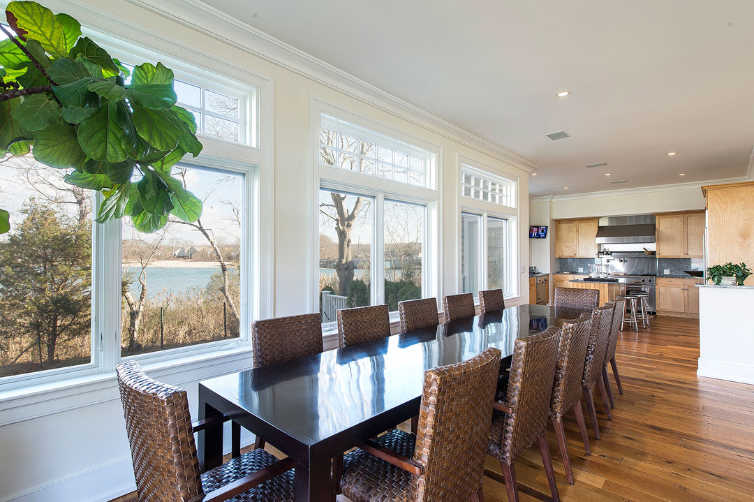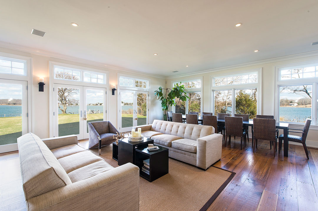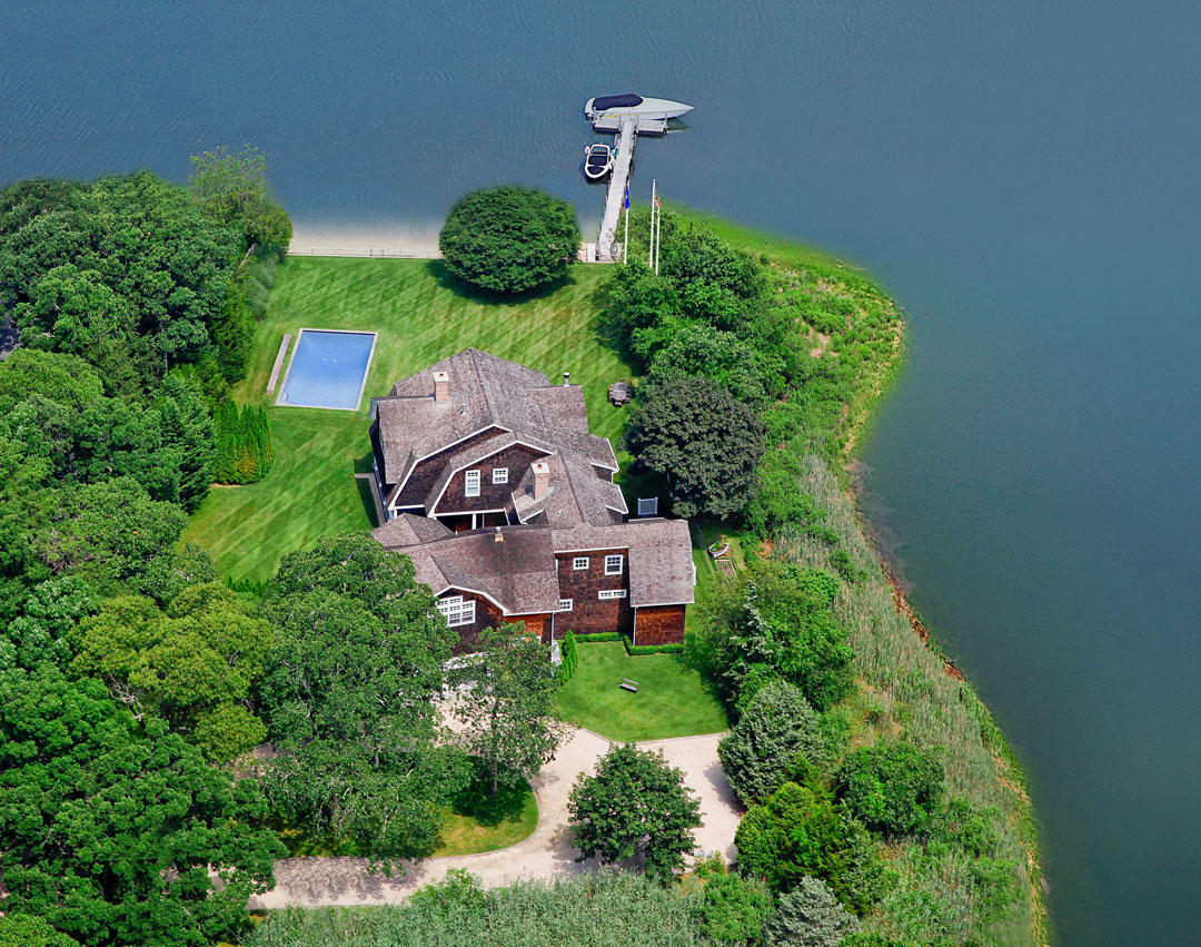 When the Kardashians visited the Hamptons in 2014, they rented this 8,900-square-foot Gambrel home in North Sea, then listed for nearly $14M. It has since gotten a sizable price cut to $12.75M but hasn’t lost any of its luxe amenities, which include a professional-grade kitchen, an airy open floor plan with plenty of oversized windows and glass doors and a sprawling master suite. The home is situated on nearly 2 waterfront acres and the property features rolling manicured lawns, a heated pool and an 85 ft dock. Douglas Elliman’s Danielle Lise Desrochers is the listing agent.