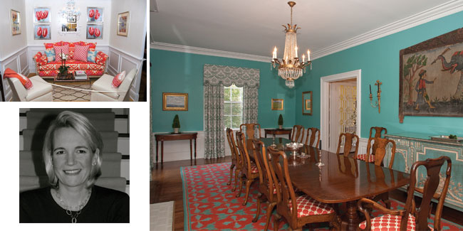 You’ve lived in Florence, Chicago, New York, Boston, and now Old Lyme. Have these places influenced your designs? I soaked everything up in Italy–the language, art, history and, of course, the food. In Chicago, I discovered my interest in interior design; in New York, I pursued my interest with school and a job in a large firm; and in Boston, I took the leap and started my own business. Though not a city, Old Lyme has played a significant role in the history of art in America. There are wonderful museums, galleries and shops here and in neighboring towns. What is your most prized possession? An antique locket I purchased a few years ago. In it, I have photos of my husband and our three children. I wear it almost every day. You worked for David Easton. What did you learn at this firm? Working there was a huge eye-opener for me, aesthetically and in seeing a design firm run as a business. The scope of clientele and the resources he exposed me to were invaluable references for my work today. His emphasis on the architectural elements in design has definitely influenced me. You started your business before having children, and now have three. Have they changed your approach to design? Absolutely. Having children has made me embrace the whimsy and fun you can have with design. I have always favored symmetry, since I learned my name was a palindrome in school. My children have helped me to be less rigid and more flexible. They have also made me appreciate the importance of having something of my own, and I believe that having a creative outlet makes me a better mother. Your vignette for the Child & Family Services Interior Inspirations fundraiser was full of color and pattern. What was your inspiration? My daughter’s antique daybed. It had been in her room, covered in its original upholstery. The vignette gave me the perfect reason to have fun with a new fabric. The pink and orange ikat is feminine, bright and cheerful. Is there a color or pattern you especially like? My son asks me this question almost daily. He cannot imagine I could have more than one. The truth is, I love colors of many varieties, all of which can change their appeal when placed in different environments. As for fabrics, I have always loved Fortuny and ikat. How will you be using honeysuckle, Pantone’s color of the year, in your designs in 2011? I imagine a small powder room lacquered in honeysuckle, or just using it as an accent in the painted backs of bookcases.