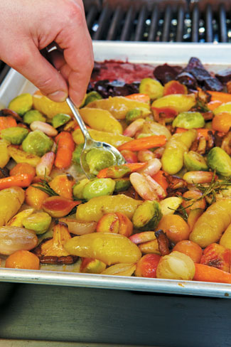 4. Place vegetables in a baking dish and bake at 315 degrees until tender, approximately 30-45 minutes. Prepare red beets the same way, but separately.