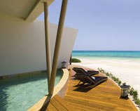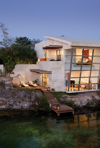 One of the Riviera Maya’s most luxurious resorts, Rosewood Mayakoba is nestled among winding lagoons, undulating swimming pools and a mile-long stretch of white sand beach on 1,600 acres. It reopened in 2012 after a $1.6 million renovation. Guests are delivered by boat to beachside studios, oceanfront and lagoon suites that are furnished in beige and white, and offer private pools, rooftop sundecks, garden showers and individual docks.