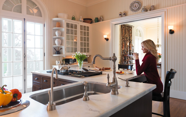 Designers love stainless steel sinks because of their undermount capability. Also, as homeowners, we tend to be hard on sinks, and stainless steel is always a popular choice for it’s durability. When shopping for a sink, keep in mind that lower-gauge stainless steel makes for a better quality sink. Some people find stainless steel sinks noisy, but that’s a problem that can be addressed by choosing a design featuring sound-absorption technology. Franke Kitchen Systems offers some impressive options with great style to match. Find out more about their stainless steel sinks at Franke.com.