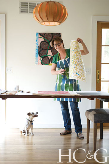 Living and working in a tranquil spot near Three Mile Harbor, Sue Heatley is surrounded by nature. A printmaker who creates limited-edition and one-of-a-kind abstract linocuts and monotypes, she draws inspiration from the beauty of the area’s trees and ripples on the water.