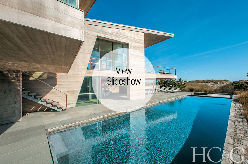 Barnes and Coy prefer decks over balconies. “The worst thing you can do is project a balcony in front of the living room and place furniture on it—you obstruct the view of the water from inside,” says Barnes. Instead, the team designed an ocean-facing living room that cantilevers 30 feet, stretching over the lower pool deck and creating the feeling of hovering above the dunes. A narrow deck to the side funnels along the living room wall, perpendicular to the ocean, splaying to 15 feet at the end. The strategy provides undiluted views from both the deck and the living room.