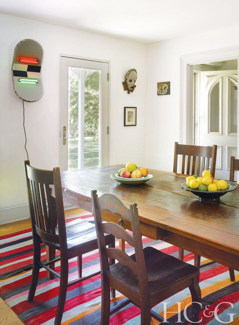The artist’s Bodo Junction Series I is illuminated on the dining room wall.