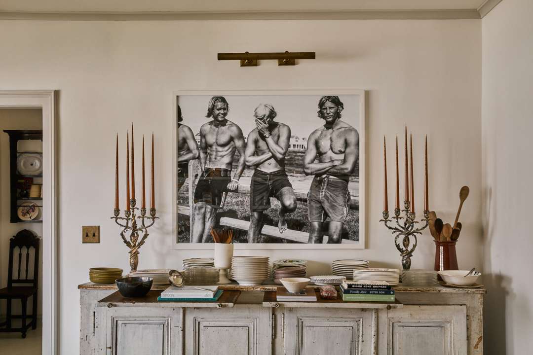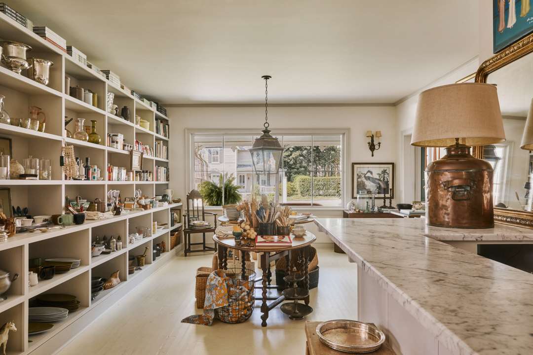 Beyond the shelves and tables of finds, a multitude of colorful folk art by Louisiana-based painter Alvin Batiste—portraits of Ruth Bader Ginsburg, country music singers, and animals—fill up the back wall. In front of it, a telling selection of books. On my visit, the curation included The Rules of Attraction by Bret Easton Ellis, The Kennedys: An American Drama by Peter Collier, André Leon Talley’s memoir, and Diane von Furstenberg’s Book of Beauty. In a back room, a colorful wall of taper candles from Ester & Erik waits to be freshly cut.