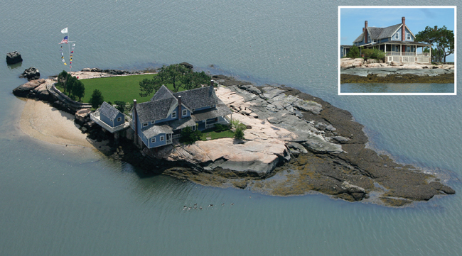 For this sweet summer cottage, we’re giving design credit to Mother Nature herself. The circa-1912 cottage sits on private one-acre Belden Island, part of the Thimble Islands off the coast of Branford, just north of New Haven. Its exteriors top those of even the most talented landscape designers—mere humans simply can’t manufacture the stone terraces, which are actually the rock outcroppings of the island itself, and the sunrise-and-sunset 360-degree water views. Manmade pleasures include a putting green that comprises the entire front yard, wraparound porches and a boat dock. The 2,000-square-foot interiors offer original wainscoting, pretty paneling and two fireplaces, as well as four bedrooms and two bathrooms. Margaret Muir of William Pitt Sotheby’s International Realty in Madison has the listing. 203-245-6700.