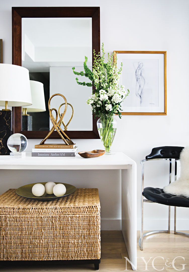 The young couple had relocated to Manhattan for Rosenstein’s husband’s job, although she reports that they were “ready for a change after living in Chicago for several years.” Plus, they finally had an excuse to part with outdated furniture and college detritus that had accumulated over time. In their new digs, Rosenstein set out to create a mature, sophisticated space with clean-lined furniture and a neutral color palette. “I love things that are classically designed, whether in fashion or interiors,” says Rosenstein, who attributes her aesthetic leanings to her mother, also a decorator.