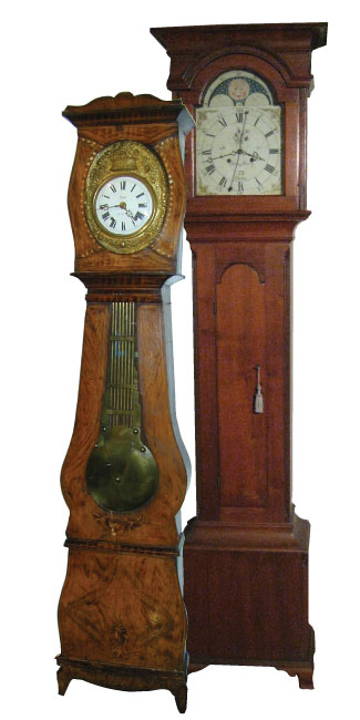 William Hildreth, owner of Mill House Antiques (1068 Main Street, North Woodbury, 203-263-3446, millhouseantiques-ct.com), shares with us this wonderful French grandfather clock that retains its original movement made by Morbier in 1820. The case is faux-painted with a brass and enamel face and hand-hammered brass pendulum. The pair of doves above the face indicates that this clock was most likely a wedding gift. The clock caught my eye for two reasons: Its faux wood graining and exuberant brass work offer a refreshing departure from its American and British counterparts, while the unexpected curvaceous form is a feminine counterpoint to the stately masculine versions we associate with traditional grandfather clocks. “Remember to check the height of your ceiling when considering a grandfather clock,” advises Hildreth. “Look for clocks that retain their original parts as opposed to those that are ‘married’ with parts from different clocks. Most of all, a clock has to have aesthetic appeal to the individual.”