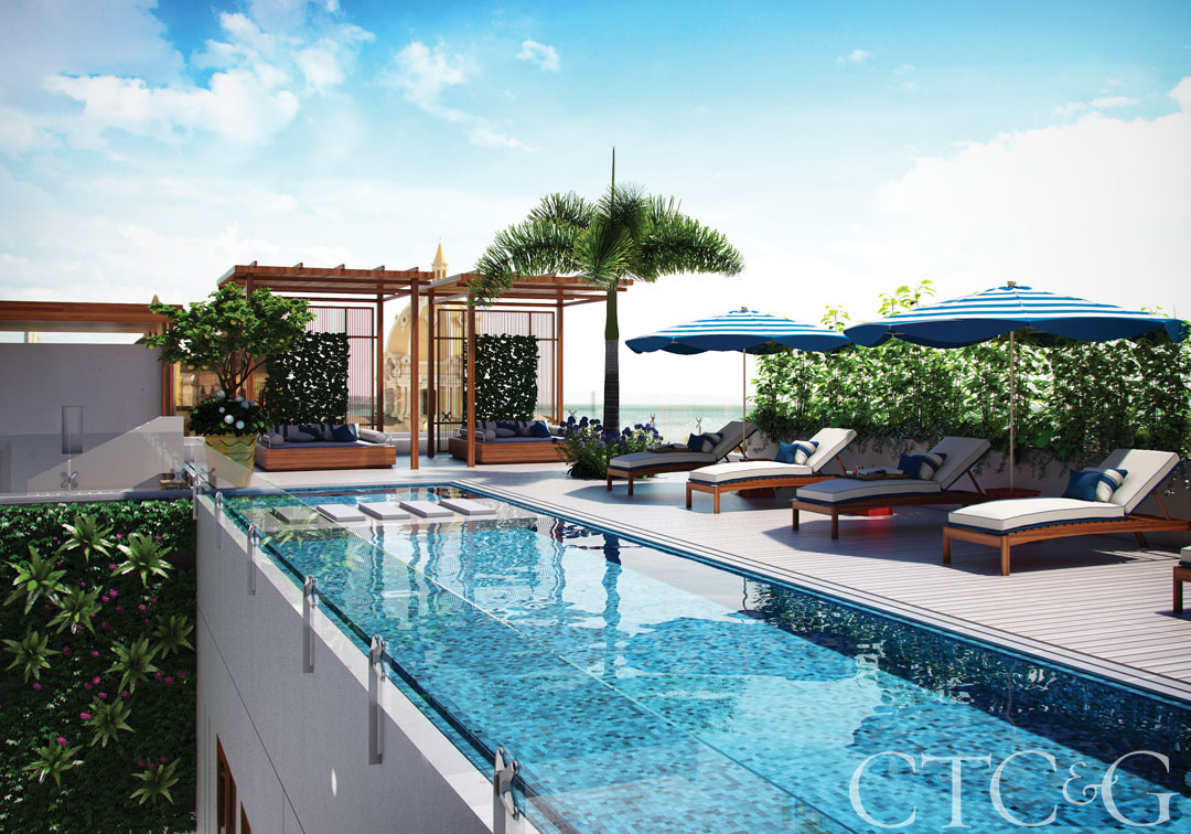Following up on her first eponymous boutique hotel in Cartagena, Colombian fashion designer Silvia Tcherassi will reveal her sophomore outing there this spring. While the first property—seven rooms in a 250-year-old colonial mansion—felt as much like a home as a hotel, the new 42-room spot will be more of a full-service operation. It uses a restored 16th-century house for its entrance but is largely contained in a new four-story structure. Tcherassi is collaborating with Cartagena native son Richard Mishaan, whose clean-lined scheme weaves together soothing and layered neutrals, referencing the walled city’s brightly painted buildings only in the blue fresco finish of the vestibule. Mishaan has custom designed everything in the hotel, from the check-in and concierge station modeled after a travel trunk found in Cartagena’s Palacio de la Inquisición Museum, to furniture inspired by Tcherassi’s tailored and refined collections, to locally handcrafted lighting and textiles. Vertical and hanging gardens on terraces, in courtyards and on the roof will connect the rooms, restaurant, spa and pool to nature.