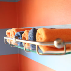 A guest bathroom influenced by the ocean takes center stage in this Fairfield home