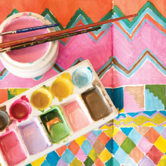 Decorator Muriel Brandolini glams up her Hampton Bays getaway with layers of fabric and full-on color
