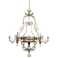 Delftware pieces add a unique and historical feel to any space. With notes of blue and white, the tin-glazed pottery includes objects ranging from plates, tiles, ornaments and even chandeliers like shown here.
