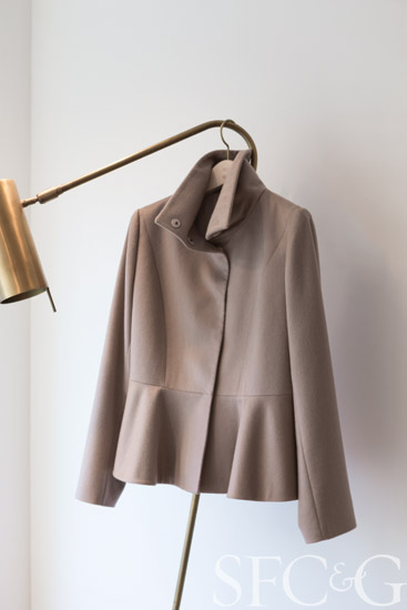 I was inspired by the roofs of the buildings, their lines,” says Jaenicke, pointing to the collar of her Aman coat, a piece whose pleats and exaggerated shape echo the ridges and sweeping curves of Chinese temples and palaces. Those architectural details are among the elements that first caught the attention of Jessie Black, owner of the Sacramento Street boutique that bears her name. “It was love at first sight—it really was,” says Black, who came across a Jaenicke cashmere jacket while shopping on Union Street last year. “Within 10 minutes of leaving the store, I called her.”