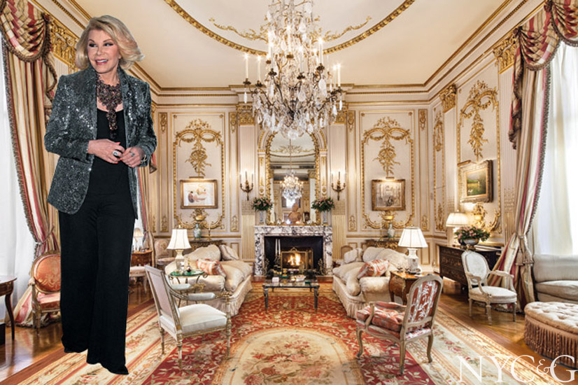 For a quarter century, Mrs. Edgar Rosenberg ran the condominium board at One East 62nd Street with an iron fist. “It’s the only area where you truly can’t joke around,” she once said—a funny sentiment, when you consider that Mrs. Rosenberg was known to everyone by her stage name: Joan Rivers. Now the late comedian is likely having the last laugh with the recent listing of her triplex penthouse for $28 million. The 5,100-square-foot spread sits atop a Gilded Age mansion and boasts five bedrooms, two terraces, five fireplaces, and a ballroom decorated in a style Rivers famously called “Louis XIV meets Fred and Ginger.”