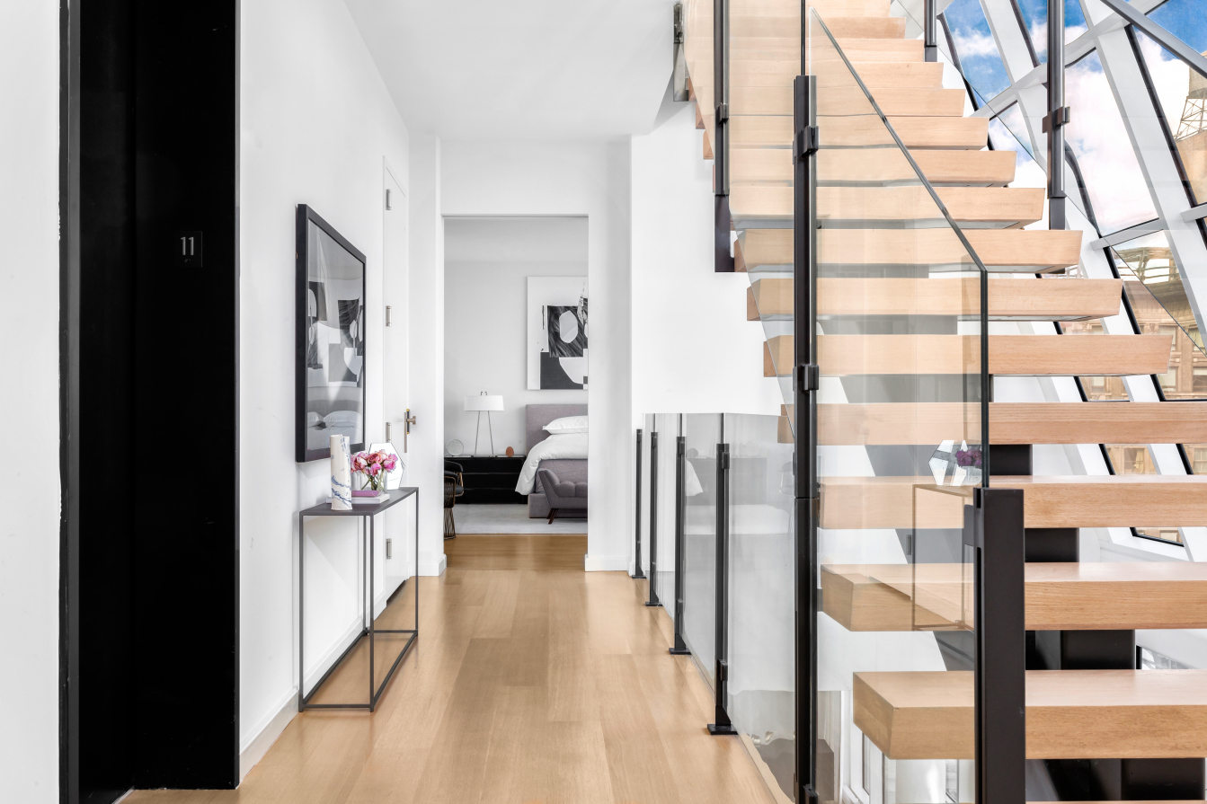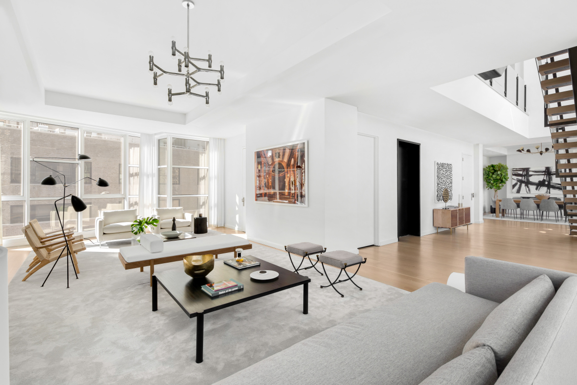 Justin Timberlake may be saying “bye bye bye” to SoHo and hello to Greenwich Village. The NY Post reports that he was spotted checking out a triplex penthouse at 12 E. 13th Street that’s currently listed for $18.5M with Compass’s Leonard Steinberg, Hervé Senequier, Amy Mendizabal and Calli Sarkesh. The pop star currently resides in a penthouse in the SoHo Mews condo building at 311 W. Broadway with his wife, Jessica Biel, and their 2-year-old son Silas. If the family does decide to move, they’ll upgrade their digs from 3,000 square feet to nearly 6,000 and get 4 bedrooms and 5 bathrooms plus 900 square feet of private terraces in a brand new apartment. CetraRuddy is behind the design of the spread, which features a 3-story wall of glass for a flood of natural sunlight and a dramatic sculptural staircase that connects all 3 levels. The first level features entertaining-ready living spaces and the professional-grade kitchen, while the second floor is home to the glamorous master suite. The top floor of the apartment features a media room and terrace overlooking Greenwich Village.