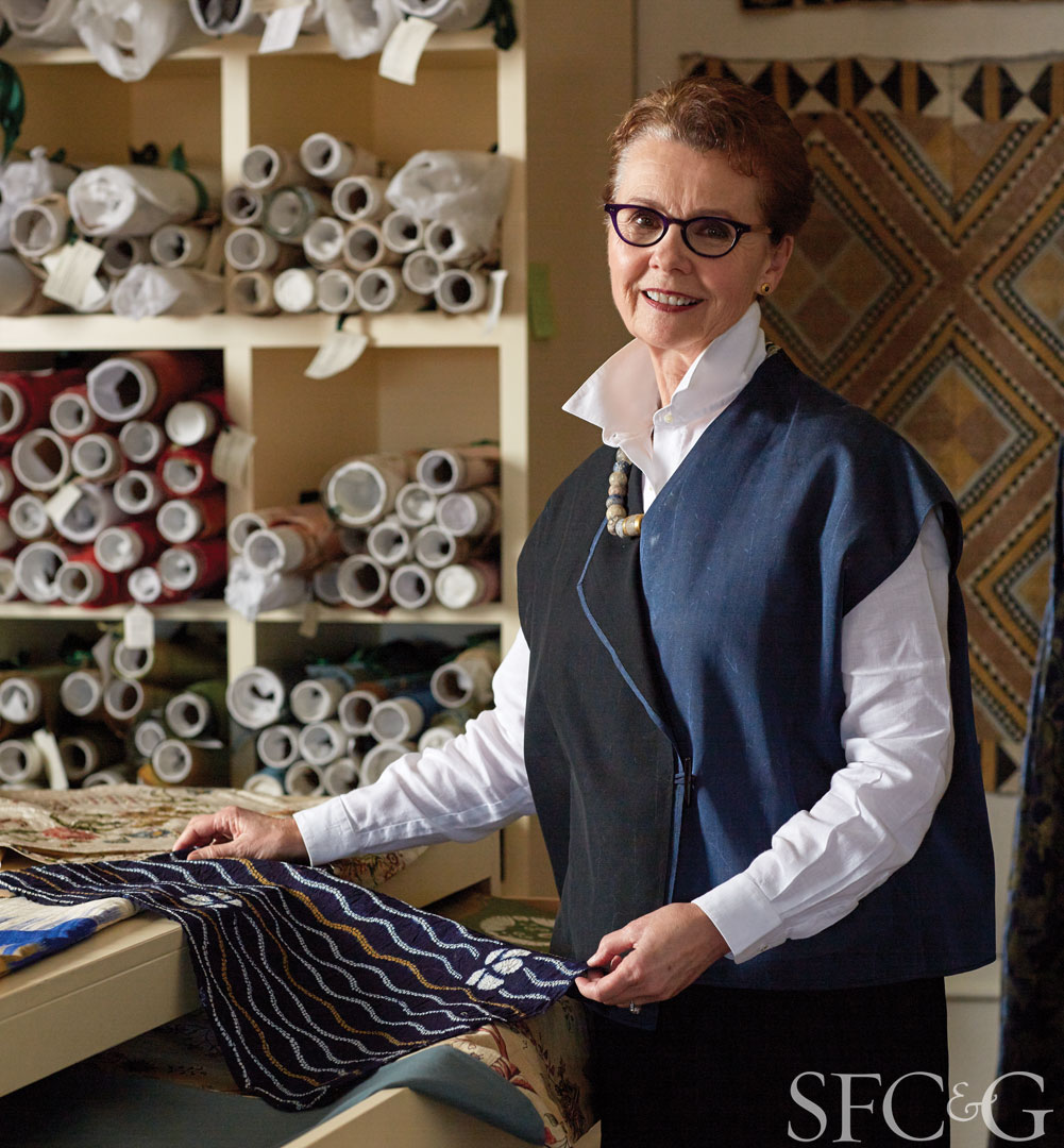Feathery green leaves in an 18th-century French tapestry; lush flowers and vines rambling over a hand-painted ceremonial hanging from Sumatra; inky Japanese indigos. Stepping into the Lotus Collection showroom, where Kathleen Taylor deals in museum-quality antique textiles, it’s hard to know where to look first. But that’s where this trained art historian’s graciousness and scholarship comes in; Taylor, who works with museums as well as interior designers and collectors, is delighted to share her knowledge. One of the country’s leading sources for antique decorative textiles, Taylor recently moved from her iconic Jackson Square showroom of over 25 years to a sunny new appointment-only space in Sausalito, enabling her to focus on serious visitors and clients, and to do research—a very important aspect of the work.