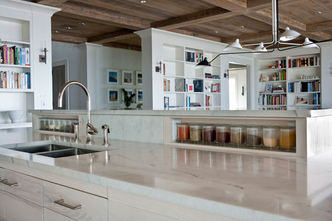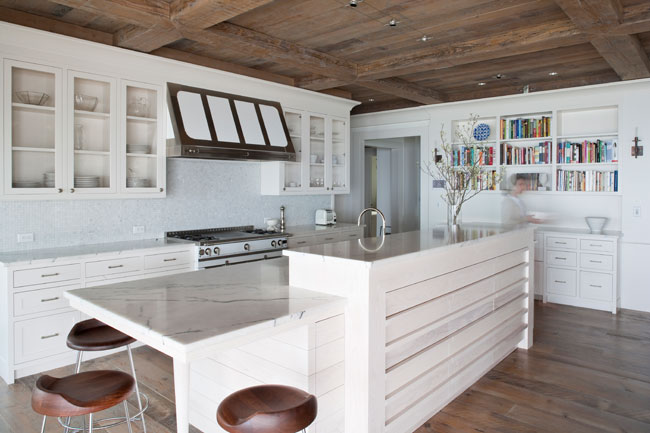 A waterfront kitchen opens up with pairings of bucolic charm and modern refinement