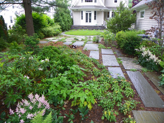 Imaginative design on a small Greenwich property successfully blends additional parking with an in-town garden