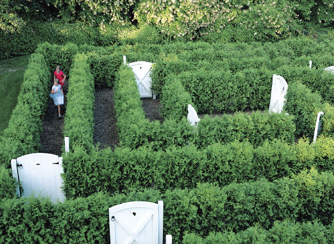 A life-size maze brings a touch of whimsy to this terraced garden