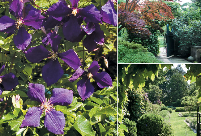 An impressive stone wall and a number of mature trees were already in place when Alice Cooke began. She sharpened the focus and kept the pool secure by adding gates, custom iron fencing and focal points to mark entries and to tie the landscape and pool area back to the house. “I never did drawings,” says Cooke. “It was great to have the work be a direct conversation between the client’s dream and the designer’s aesthetic.”