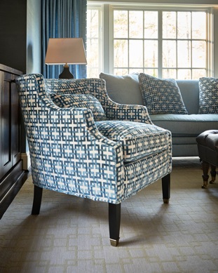 Durable fabric is just a must for lively living, but putting the Savvy Chic in the details of the sofa or club chair will make a statement that is indestructible. I use this chair from my Savvy Chic Upholstery line in almost every project.