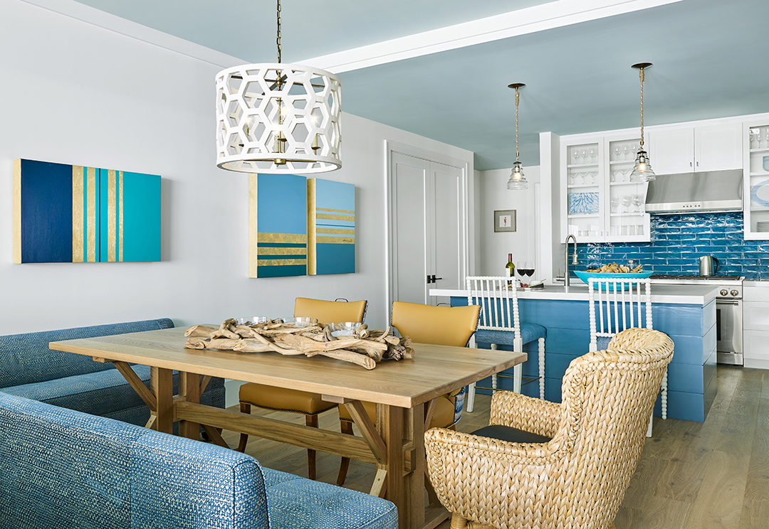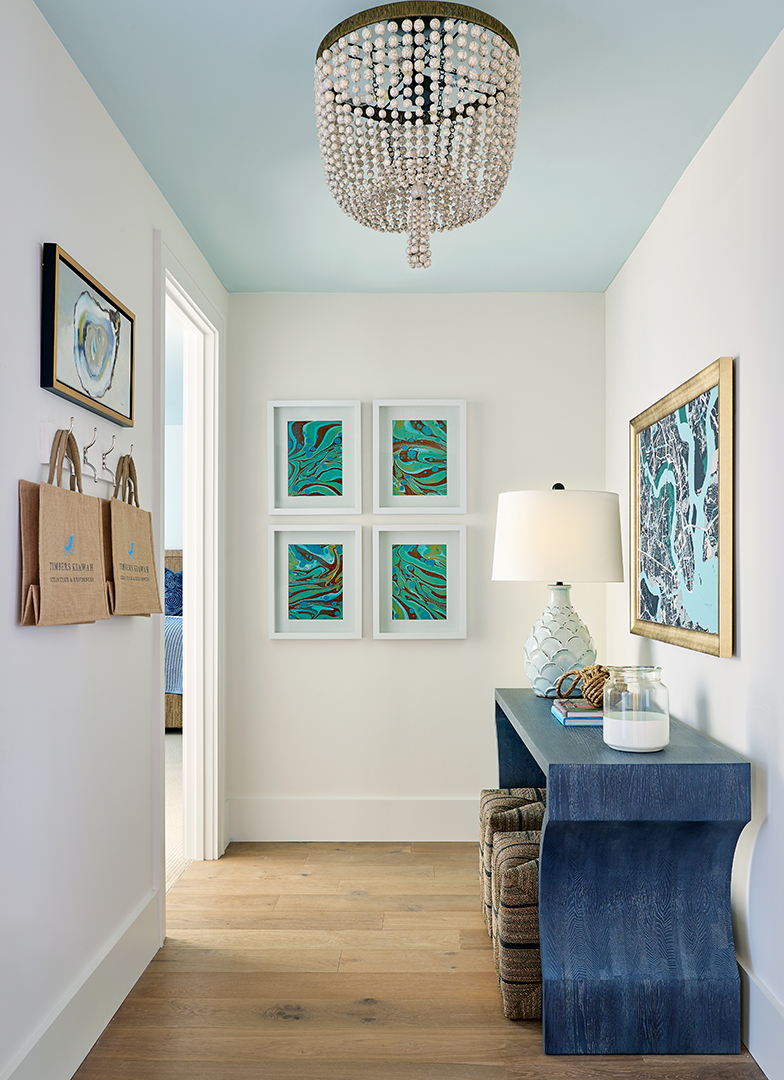 The property is also beautifully designed by Joni Vanderslice of J. Banks Design Group, an international firm based in Hilton Head, with her focus to bring Lowcountry coastal vernacular into the future. She already completed one three-bedroom home, which seamlessly blends the region’s traditional aesthetic with today’s modern sensibilities. She achieves this by custom designing furniture that marries the two styles; mixing marble with concrete; applying oyster shell tabby in new ways; and by painting the ceilings blue – a twist on Southern folklore.