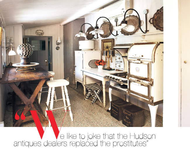Mulford opened his new shop one week before 9/11. “All of a sudden there was no business, no one walking the street,” he says, and eventually he put his building up for sale. Looking around, he realized that the dealers who were surviving the post-9/11 years were selling their wares online. He called up 1stDibs.com to inquire about joining the ranks. “They said they’d been hoping I’d sign up, but they couldn’t reach me because I didn’t have a computer!” His leap to the web, he adds, saved his business and his home, though living above the shop was never really part of his original plan. Despite Hudson’s hipster revival and the throngs of high-end decorators who flock to his store, he prefers to retreat to a little cottage in a nearby hamlet as a getaway. “I’ve always preferred to live in isolation, and living in this town has been a real growth experience for me. I’m not really a city person. Hudson is as city as I want to be.”