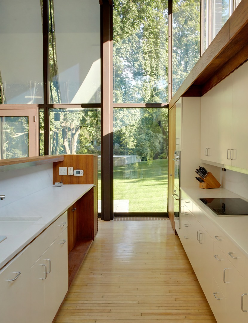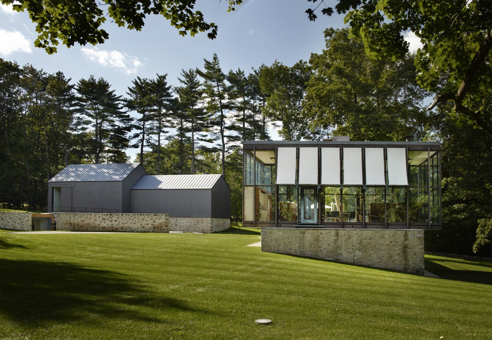 The pool and diving pad mimic the ones at Johnson’s Glass House.