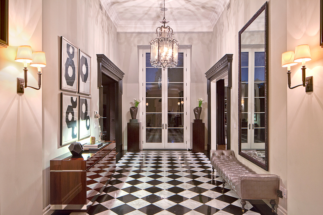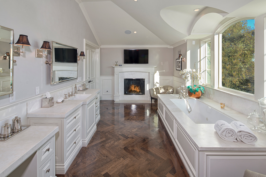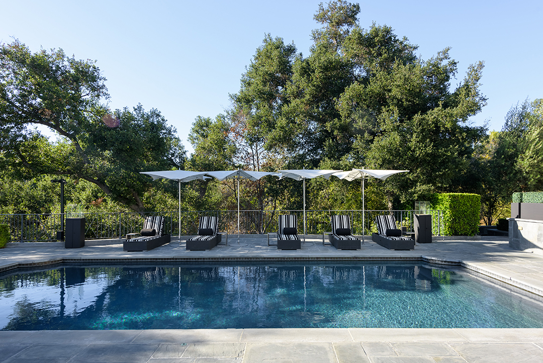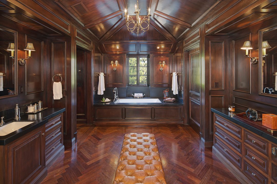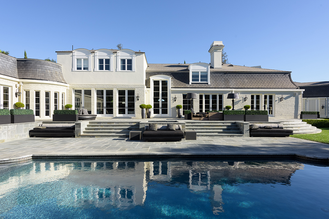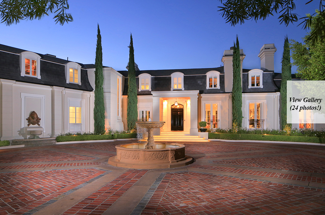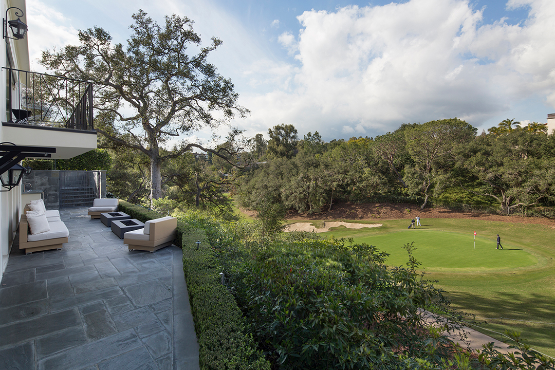 Fancy playing a round of golf every day? Or maybe just interested in the world-renowned, posh Bel-Air lifestyle? Well, this newly listed property located above the 16th hole of the prestigious Bel-Air Country Club is a home that offers both. Restored to have the perfect balance of old Hollywood glamour and modern design, this $44 million listing known as The Bellagio Estate is a sound investment for any high roller.Nestled behind iron gates and lush trees, an impressive circular motor court with space for 30 cars awaits with a tasteful outdoor fountain adding to the splendor. The grand yet sleek front entrance is the perfect introduction to the breathtaking interiors.The vibe of the circa-1951 house is appropriately reminiscent of a chic California country club, thanks to the focus on indoor-outdoor living. Floor-to-ceiling pocket doors shine in the family room and kitchen, opening to terraces within earshot of the neighboring green. Two master suites are primed for royalty with walk-in dressing rooms, opulent baths, and elegant sitting areas.The home office sports beautiful wood paneling, soaring high ceilings, and competent audio/video options. Nearly every room features chic French doors leading to the expansive backyard, which boasts beautiful lighting, fire pits, a putting green, and a swimming pool.Sumptuous amenities inside include a wine cellar, plush media room, and exercise room. Wired for modern living, the house has numerous iPads throughout that control all lights, alarm systems, waterworks, AC/heating, music, and television.The pristine pocket listing is held by Kristin Regan, David Parnes, and Mauricio Umansky of The Agency.