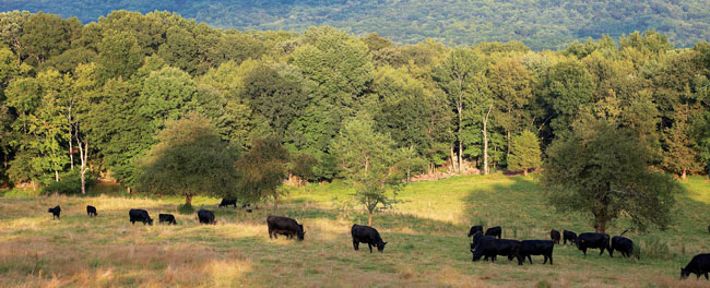 A FAMILY AFFAIR Family and friends seemed to line up when Libby and Terry Fitzgerald decided to raise Black Angus beef in the pasture land adjacent to their 18th-century farmhouse. “We started with 10 cows; now we have 300,” says Libby. “People are more concerned these days about what they feed their children.” When the Fitzgeralds bought Greyledge Farm in 1993, they got involved in land preservation in Litchfield County, where there’s a big movement to keep farms open and working. But a desire to produce healthy food and raise animals in a humane, healthy and sustainable way is what prompted them to start raising cattle. Splitting their time between Roxbury and New York City (Terry is in investment management there), they oversee farming operations at Greyledge, where they also raise pork and poultry in an “organic and humane” manner. And it is truly a family affair: Their sons (ages 17, 15 and 8) work on the farm every summer—caring for the animals, performing land maintenance and working at the farm stand. As for that commitment to land preservation: With so many animals, they now lease additional land from local land trusts (Roxbury Land Trust and the Weantinoge Heritage Land Trust) to accommodate the cows and to farm hay.