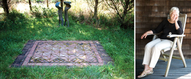 Kerr’s very first design is based on a Persian rug in the Springs home that she shared with her late husband, artist Robert Richenburg. Lots of trial and error led to its creation, with Kerr assuring her mason, “‘This isn’t a sidewalk; it’s a sculpture.’ We didn’t know what we were doing, but the next one was easier.”
