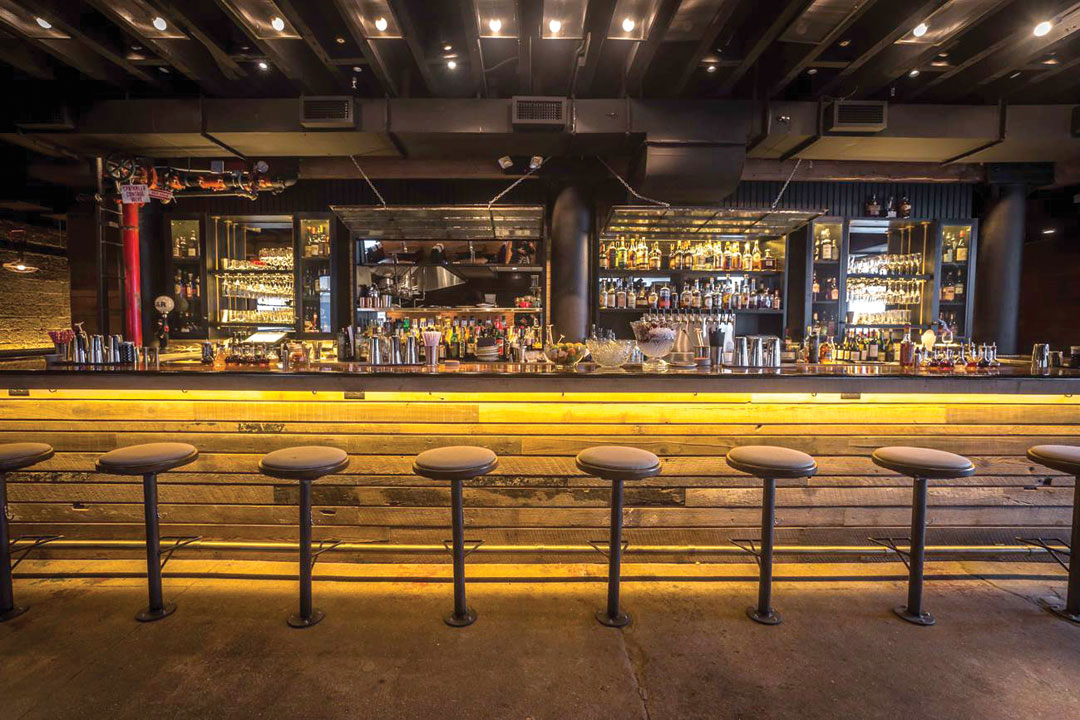 The Concept: “Our theme is roughly ‘frontier heritage American,’ with food that undergoes much smoking, curing, and pickling,” says Aussie co-owner Josh Mazza. Patrons enter through an American dry-goods boutique selling Pendleton blankets and Lotuff leather into a room with burgundy velvet curtains, chestnut leather booths, and antique-bronze oil lamps.