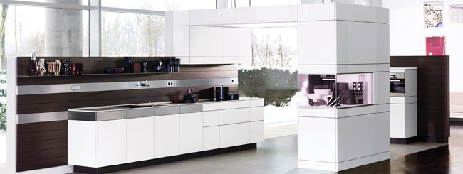 According to Poggenpohl… It’s all about the new +Artesio kitchen. Lacquered glass door fronts add sleekness; integrated lighting contributes to the modern, clean lines of the space; and a sand pine backsplash, terrarium space, and man-made veneers add warmth and texture to the room. Leather door fronts are becoming a new trend and ever-stylish stainless steel continues to be used for accents.
