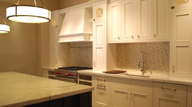 NuKitchens mixes it up with… Hand-painted, brush-stroke cabinetry in custom white or grey tones with nickel and leather hardware. Walnut, especially in dark finishes, highlights white marble or soapstone countertops. Simplicity in design is also a major element, helping to highlight every chic material, from cabinets to countertops.