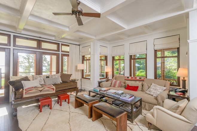 The 14,000-square-foot main residence has been recently updated and now boasts energy-efficient upgrades along with plenty of entertaining space, a library, exercise room, finished basement and 12 bedrooms and bathrooms. A full-length screened in porch completes the Lauers’ new Hamptons getaway.