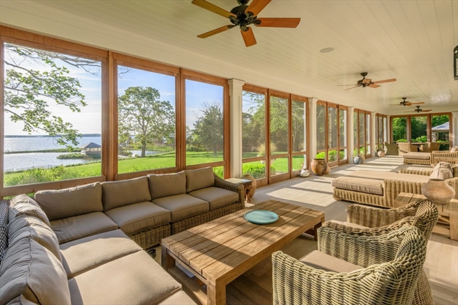 Nestled on a tranquil waterfront property in North Haven, just minutes from the vibrant village of Sag Harbor, Strongheart Manor’s 6+ acres include two guesthouses, an island-style tea house, a private dock, tennis court and 300 ft of private waterfront.