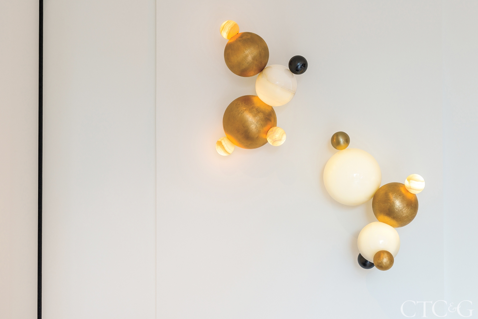 Onyx becomes the glowing, translucent shades for sconces and chandeliers—like the Darts chandelier, where bronze “darts” seem to pierce the stone shade, which is carved to look almost like draped fabric. In Salvagni’s imagination, materials become their most luxurious, and sometimes their most unlikely, selves. And this is what makes his designs so unfailingly seductive.
