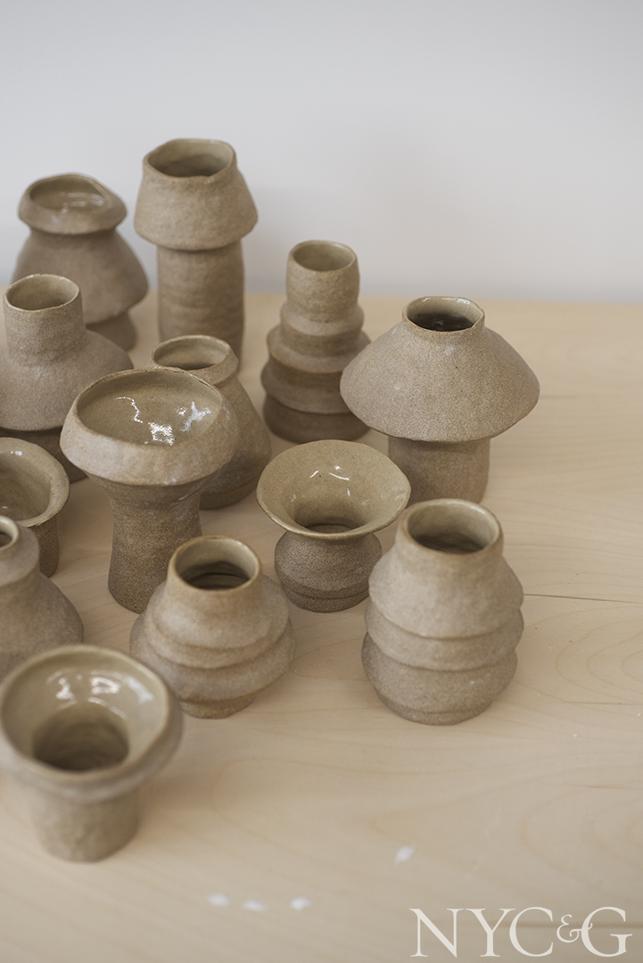 At her studio in Brooklyn’s Industry City, D’Haene works clay by hand as well as on a potter’s wheel, modestly describing her efforts as “playing, and a constant state of experimentation.” But it’s a lot more complicated than that.
