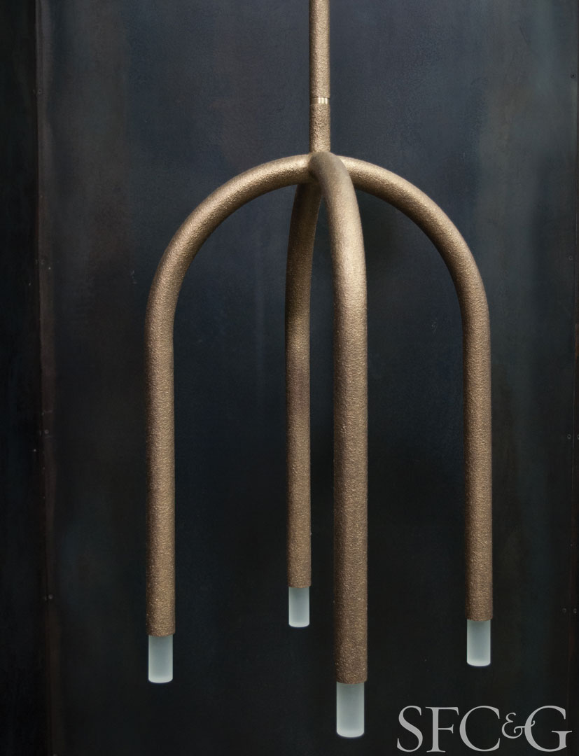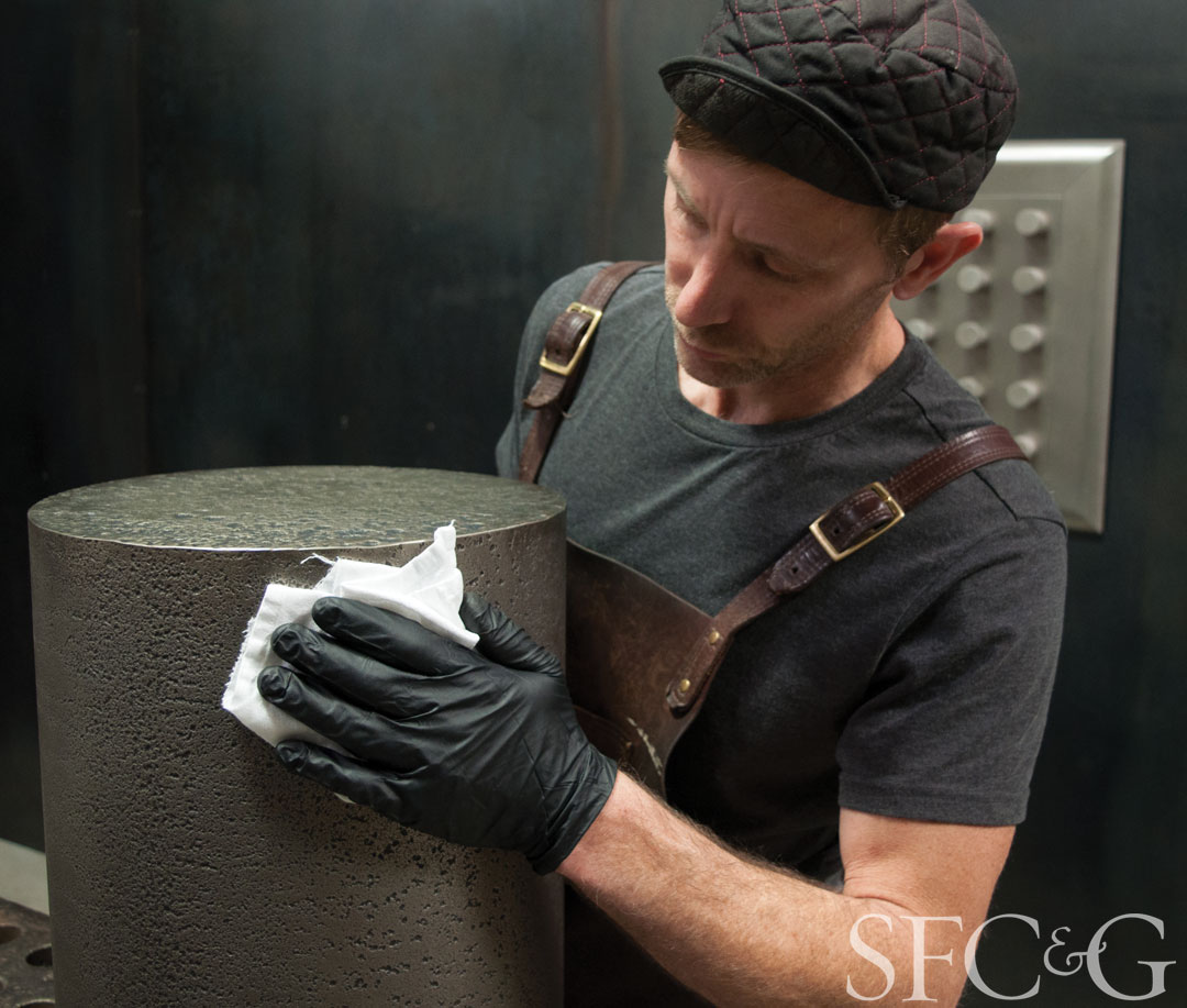 Danielson’s evolution as a designer involved a long apprenticeship as a shipwright where the daily, hands-on process of stripping degraded hull plates gradually transformed him into an expert cutter and welder. From the beginning, he was taken with the metal’s raw character, and where some people viewed crevices and pockmarks as faults, he saw handsome attributes. Subsequently, he spent several years executing furniture concepts for a slew of architects until he recently launched his inaugural collection of drum side tables, mirrors and lighting.
