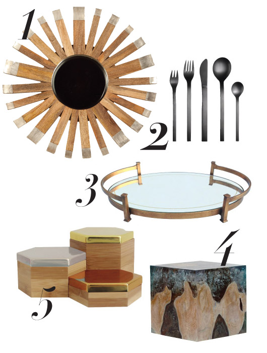 1 Made of natural mango wood and rimmed with silver-foil tips, the Rio Starburst mirror radiates good vibes in any space, large or small. $550, at Sylvester & Co. at Home, 154 Main St., Amagansett, 631-267-9777.
